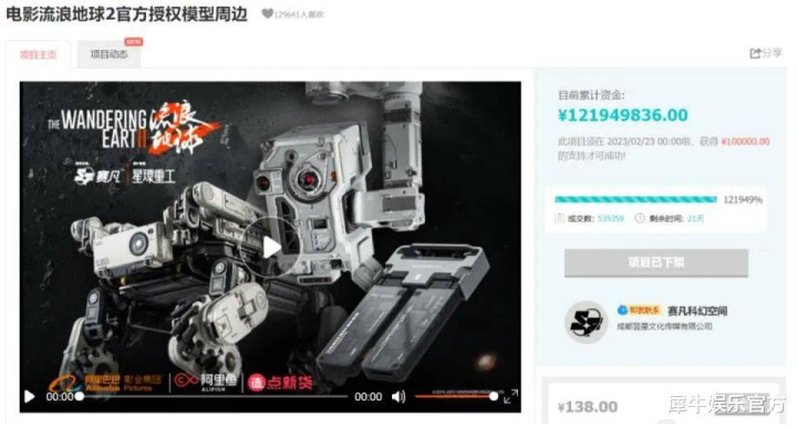 因为远超预期的火爆过程,一时让出品方措手不足提前住手众筹,而该次众筹中制作的多种类模子居品也在影片下映后的很长一段本事里仍然为关联公司带来收益。