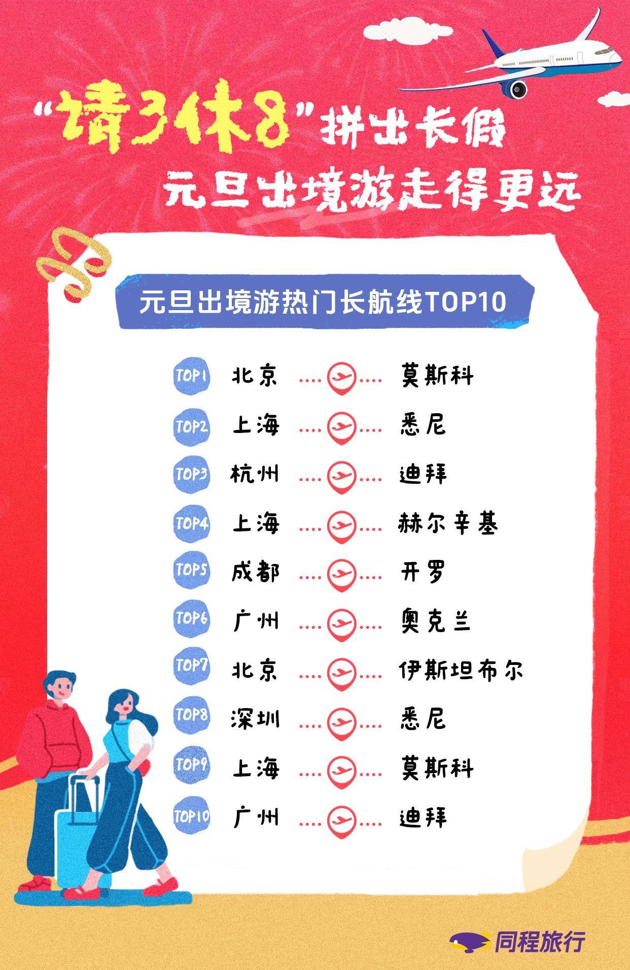 从元旦假期热点出境游航路来看,热点短途出境航路TOP10包括上海-新加坡、北京-首尔、成都-吉隆坡、广州-清迈、南京-巴厘岛等;热点资料出境航路TOP10包括北京-莫斯科、上海-悉尼、杭州-迪拜、上海-赫尔辛基、成都-开罗、广州-奥克兰、北京-伊斯坦布尔等。