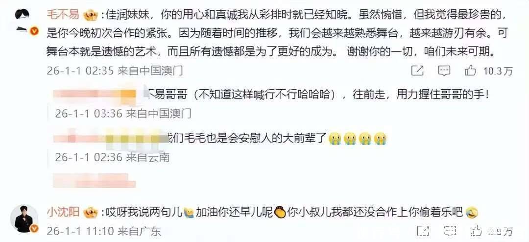 03、小沈阳护女心切 靠近儿子一次次的争议,小沈阳老是第一时辰出来护短。这次跨年翻车后,他在沈佳润的说念歉声明下留言:加油,你还早呢,你小叔儿我齐还没互助上你偷着乐吧。 这句话看似简陋幽默,实践上是在为儿子打圆场,既夸她有契机与毛不易同台,又示意她年青,翌日有豪阔的卓越空间。手脚父亲,他天然但愿给儿子最佳的,为她铺平说念路,这本莫得错。联系词,文娱圈的行径向来狞恶,不雅众不会因为你是谁的孩子而放宽表率,最终如故要凭实力话语。