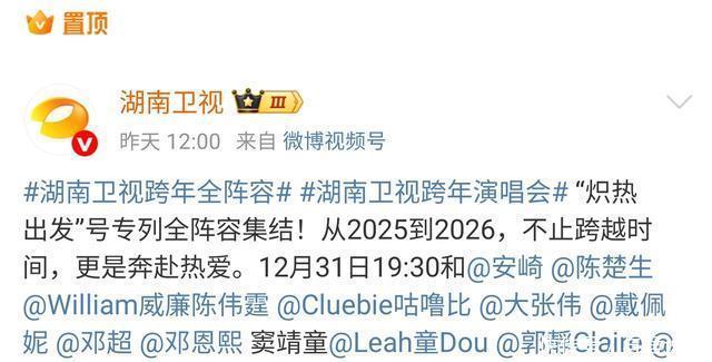 12月24日,湖南卫视公布了跨年晚会的全明星声威,这场将于12月31日晚十九点三杰出起在海口五源河通顺场举办的晚会,可谓众星云集、群星灿艳,芒果卫视的旧友新一又欢聚一堂,令东谈主目不暇接的明星声威与AR全景互动期间打造的科幻舞台曲直分明,以“燥热开拔”呼应和真切主题“去深嗜,活出彩”将聚焦凡东谈主烦事提高情愫抒发的维度,将及时弹幕“引擎化”烽火舞台烟花的新玩法将令东谈主焕然一新。