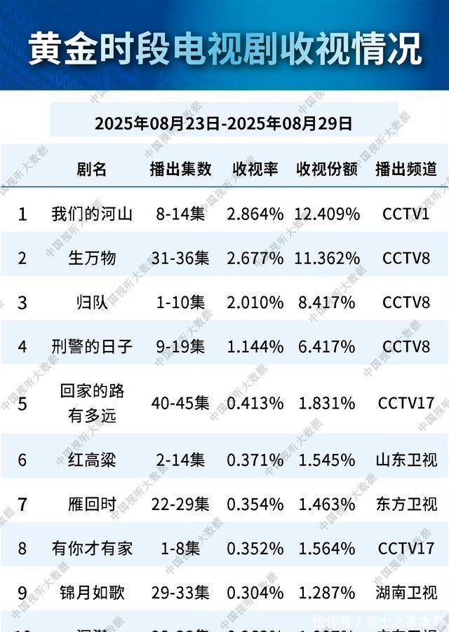 再加上王雷、陈钰琪、焦俊艳、张天阳等实力派演员,是以该剧大致以2.864的收视排在第一,真乃实至名归! 结语 从这份榜单不出丑出,不雅众照旧不爱看工业糖精式的古偶剧了,拔旗易帜的是像《归队》《我们的疆土》《生万物》这么有历史道理道理题材的大剧。