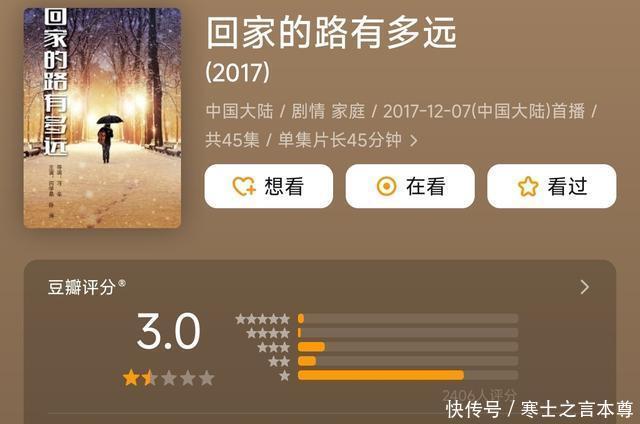 总体来说,该剧大致再次上星山东卫视,况且以0.371的收视排在第六,获利斐然。 第五名:《回家的路有多远》 雷同是老剧,但看到豆瓣口碑就不思评价了,毕竟这么的口碑,一般的剧还真作念不到,只可说导演真有你的! 而该剧固然上星央视17套,但竟然还有0.413的收视。