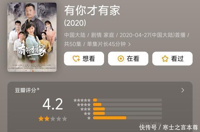 全剧看下来,惟恐也惟有女主的动作戏值得一看了,难怪就算上星湖南卫视,收视如故惟有0.304。 第八名:《有你才有家》 行为一部老剧,《有你才有家》早在2020年就首播了。 不外该剧以当今的目光来看,确乎是有点狗血,马首是瞻的大男儿,家暴的丈夫……只可说,看了两集后浑身不餍足,难怪豆瓣口碑只是惟有4.2。