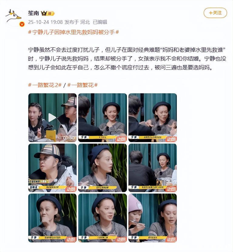 10月24日,宁静在综艺节目里随口聊起犬子的仳离故事,没预见一石激起千层浪。