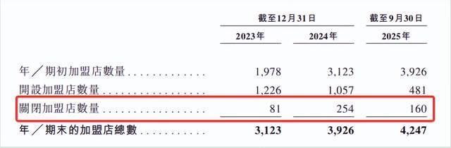 同期,招股书清晰,2023年至2025年9月,公司累计关闭加盟店495家。个别加盟商在食物安全、服务表率等方面的不当行径,可能对品牌声誉组成风险。