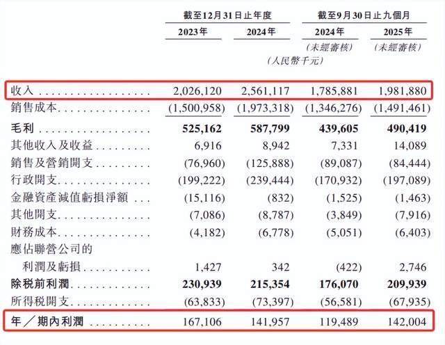 招股书骄矜,2023年至2024年,公司营收从20.26亿元增长至25.61亿元,同比增长26.4%,但净利润却从1.67亿元下滑至1.42亿元,同比减少15%。