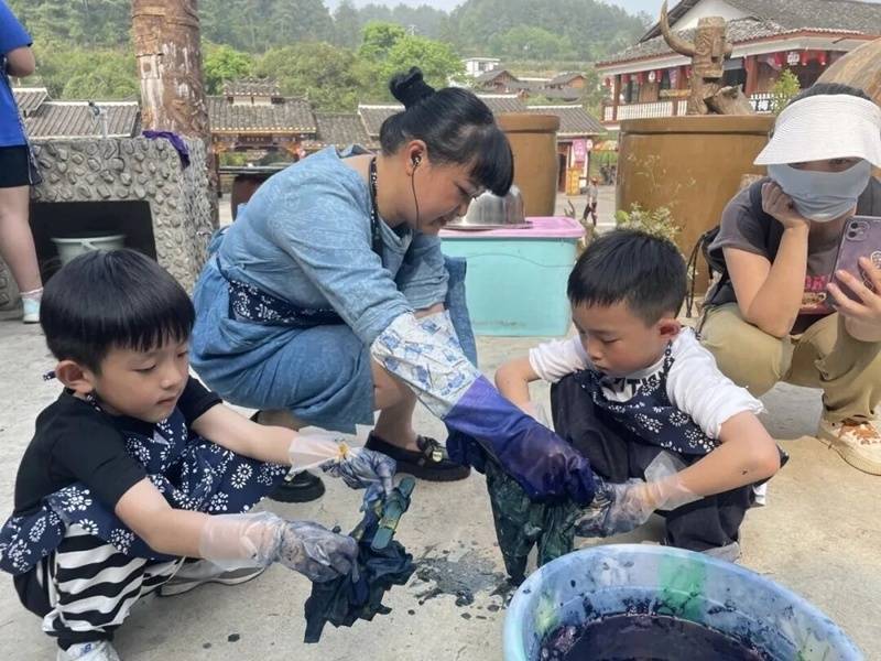 搭客正在体验枫香染。区文旅局供图