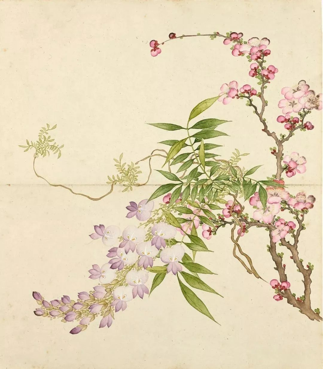 清季佚名氏所绘《寿寓恒春》册,虽无款识,然不雅其笔意,当出江南画苑高东谈主。全册以青绿设色,写寿域瑶池,松柏叠翠,鹤鹿同春,桃实累累,灵芝焕彩,一片祥瑞之气。