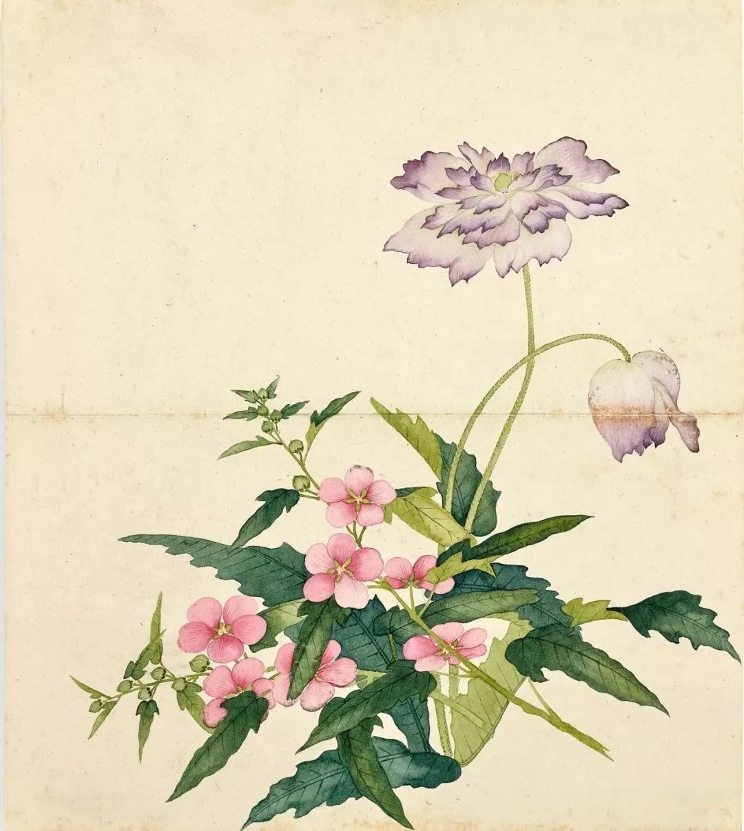 昔东谈主论舒适图式,谓"画必成心,意必舒适"。此册以松鹤延年、鹿鹤同春、蟠桃献寿诸式,合成"寿寓恒春"之旨。虽为佚名之作,然翰墨精到,寓意深化,较之事业画师,更多文东谈主雅趣。今不雅其册,虽历百年,颜色如新,桃实犹可摘,鹤影似欲飞,诚为民间祝嘏图之杰作也。