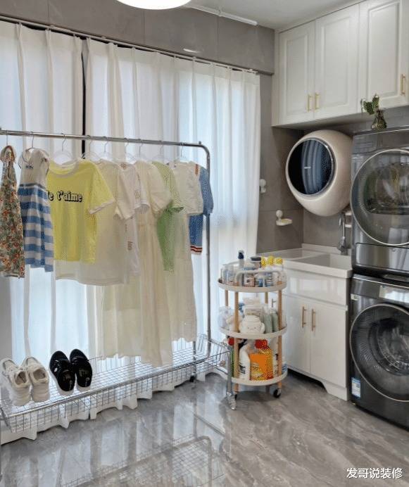 现时家里王人有烘干机,大件衣物王人可以成功烘干,平时洗的一稔,可以装一个折叠晾衣架,多角度曝晒,既好意思不雅,又不影响客厅采光。