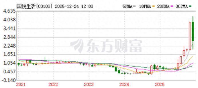 更为蹊跷的是,国锐生存股价在长达3年“千里寂”后,片刻在本年下半年发力,在短短5个多月内从每股0.65港元飙升至3.75港元,涨幅高达476.92%。在被香港证监会点名后,国锐生存股价一度大幅下落,但在其休市前的12月24日午时,股价回升11.26%,报2.57港元/股。