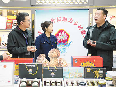 香格里拉市纪检监察干部(左、中)深刻松茸加工企业一线,面对面倾听诉求。杨雪婷摄