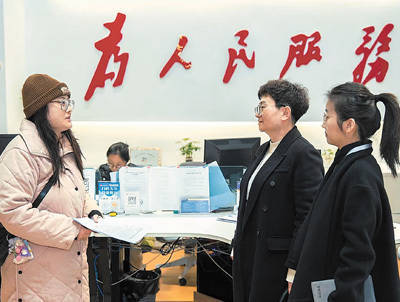 昆明市五华区纪委监委使命主谈主员(右一、右二)到政务职业大厅开展气派监督查验。陆 煜摄